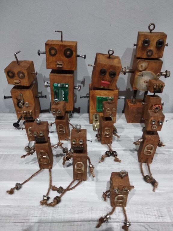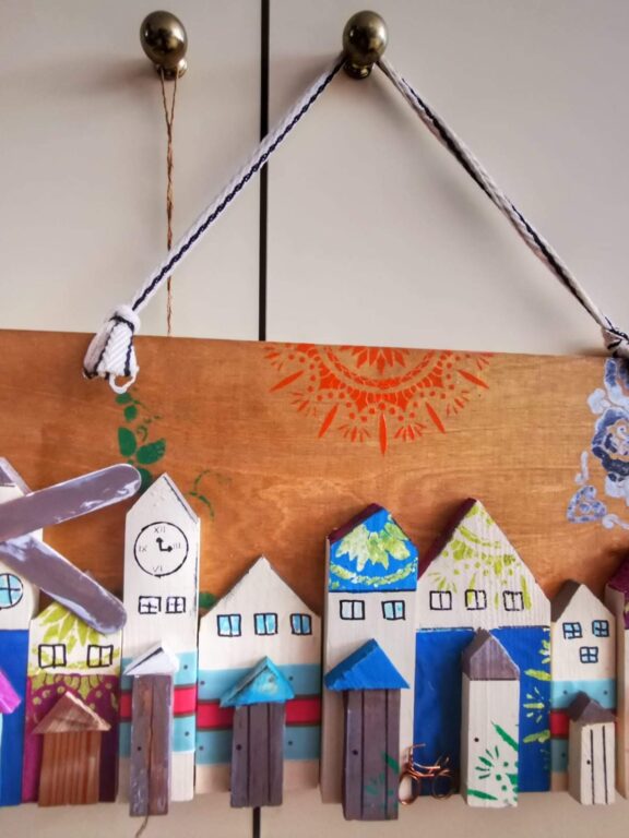 • Fusta: casetes i quadres fets amb tossos de fusta retallats i pintats a mà.